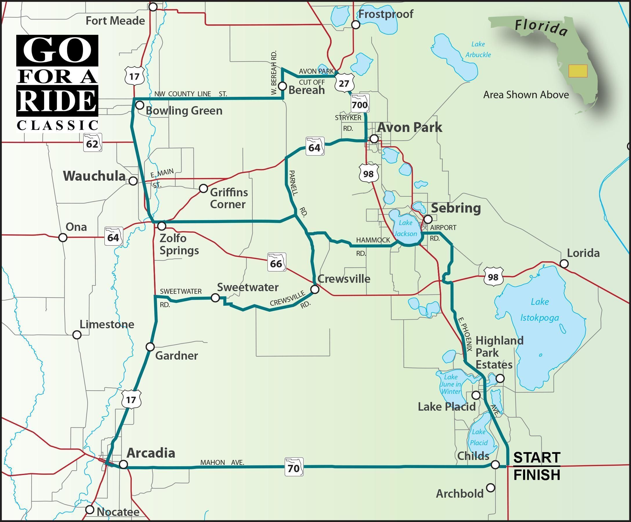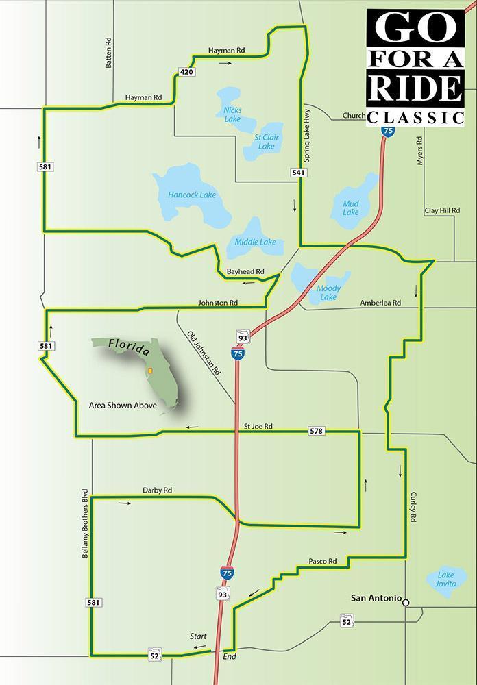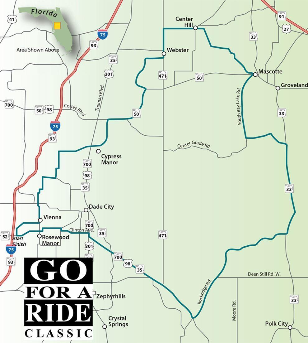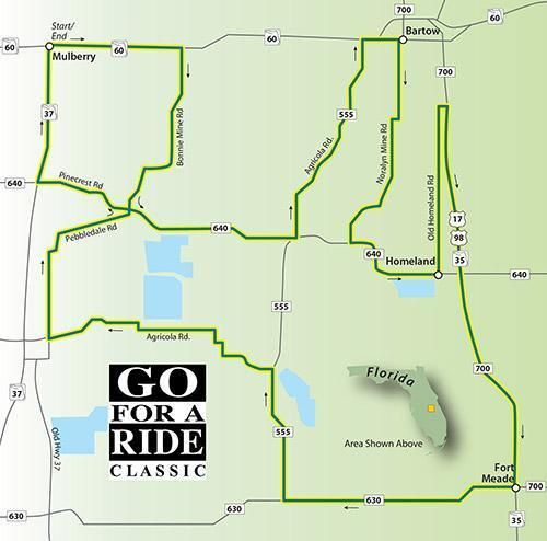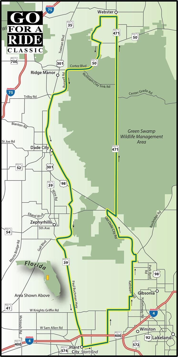 This ride starts just down the street from the old train station in PC and winds northward through the strawberry fields before heading through the middle of the Green Swamp on what has to be one of the longest straightaways in Florida. The return route skirts around Dade City and Zephyrhills on your way back.