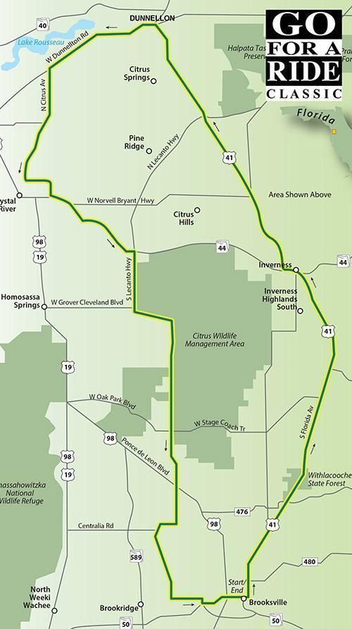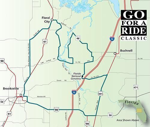 Even before Florida was granted statehood in 1845, the land in and around the Withlacoochee State Forest has been populated by farms and ranches. The area was home to a sugar mill during the Civil War and was a major contributor to Florida's citrus industry for many years. This month's ride starts at the Florida National Cemetery which is just off 1-75, north of Brooksville. Along with miles and miles of country back roads, you'll find cool places to stop for a break in and around Floral City and Brooksville.