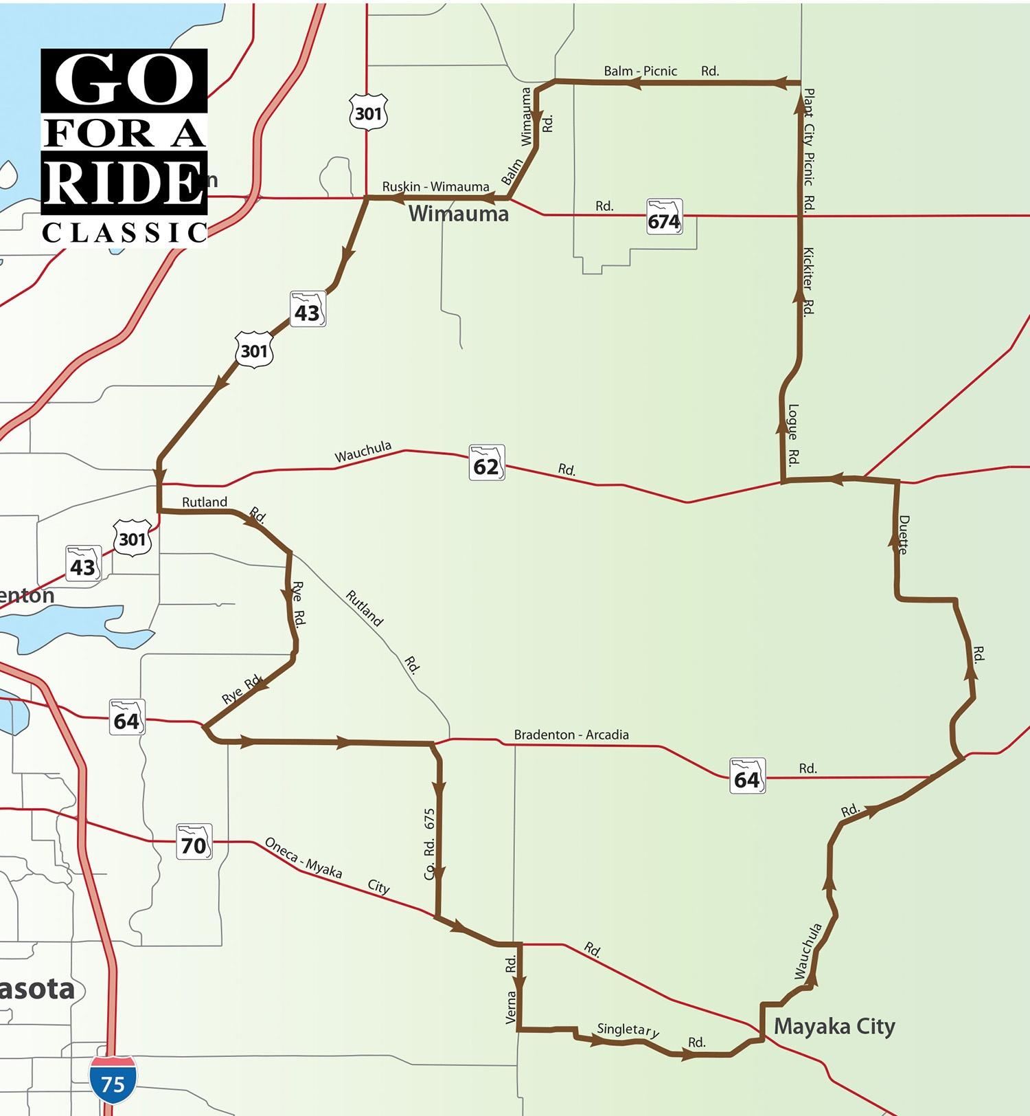 This ride starts just north of the Little Manatee River State Park on US 301 and takes you south through the Lake Manatee Lower Watershed and the Upper Myakka River Watershed before heading north to the Alafia River State Park. The area is very popular with weekend riders and there are several biker hangouts in the area, just follow the crowd if you're looking for a diversion from the suggested route